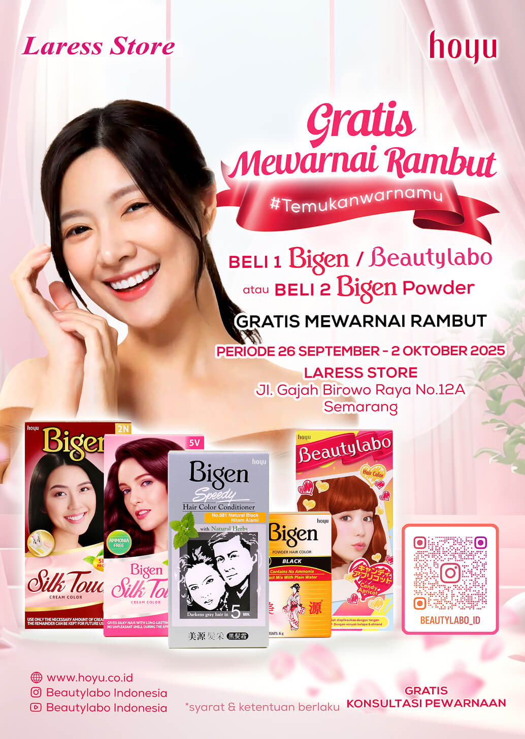 Aktifitas GRATIS MEWARNAI RAMBUT tersebut akan diadakan di Toko Laress, Jl Gajah Birowo Semarang tanggal 26 September – 02 Oktober 2025.